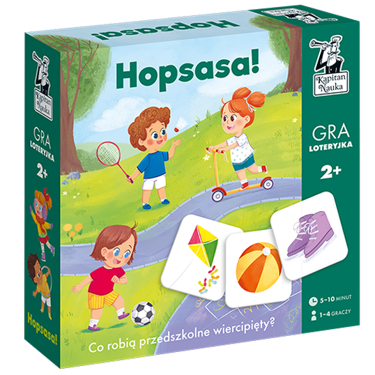 Hopsasa! (2+) is a themed game for preschoolers. Children learn about fun and physical activities in the open air or at home, as well as improve their perceptiveness and reflexes in searching for details. The goal of the game is to match the chips to the boards and put them in the right places. Players gain knowledge about what to play and what to use certain times of the year. A game for reflexes and perceptiveness!