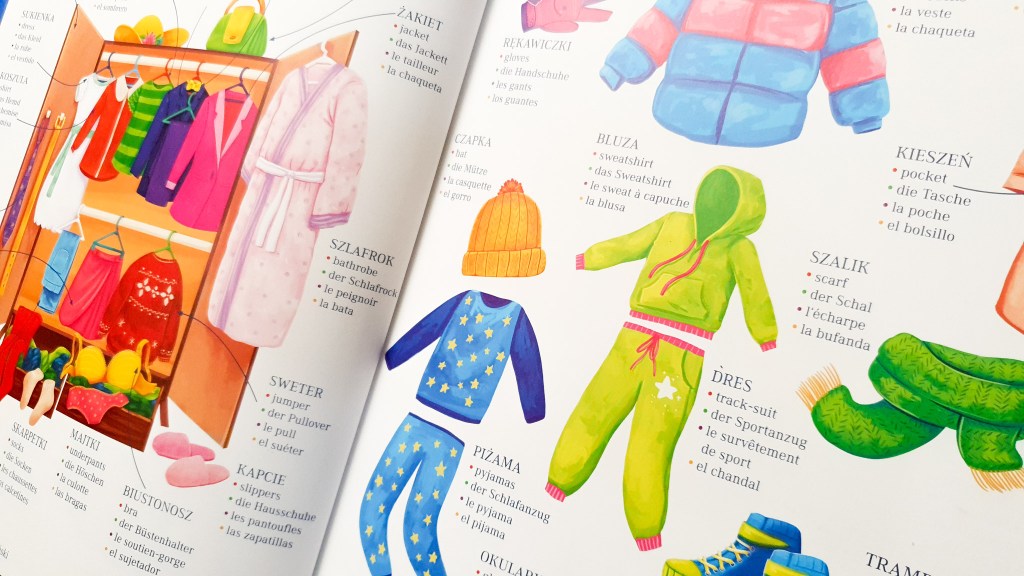 Richly illustrated dictionary for children that contains entries in five languages: Polish, English, German, French and Spanish. Colourful pictures will help children remember basic words in foreign languages.